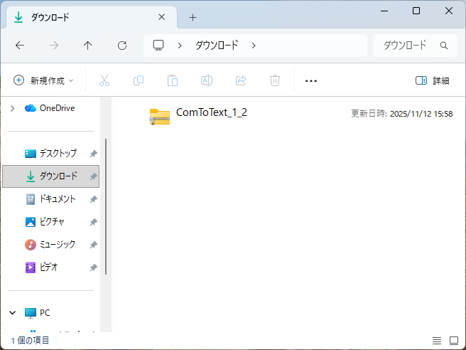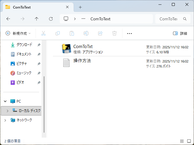 「ComToText」フォルダがCドライブのルートへ移動します。