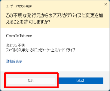 次のメッセージが表示された場合は[はい]ボタンをクリックして続行します。