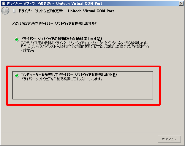 [コンピューターを参照してドライバー ソフトウェアを検索します]をクリックします。