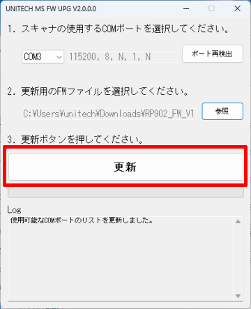 [更新]をクリックして、ファームウェアの更新を開始します。