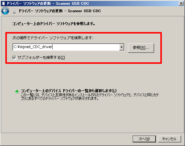 [次へ]ボタンをクリックしてデバイスドライバのインストールを開始します。