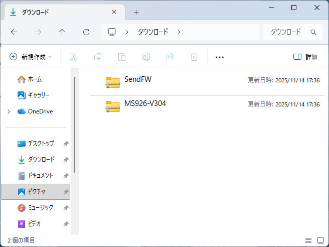 更新する製品にあわせて必要なファームウェアファイルをダウンロードします。ダウンロードしたzipファイルは任意のフォルダに解凍(展開)してください。