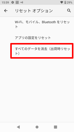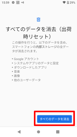 デバイスをリセットすると、デバイス内のデータや設定が削除されてご購入時の状態に戻ります。