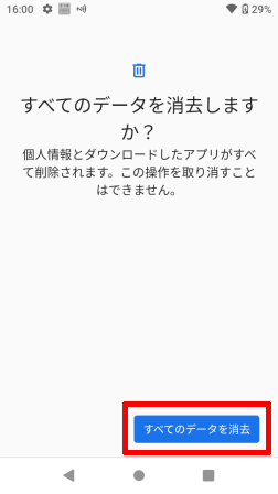 [](ボリュームアップ)キーと[](ボリュームダウン)キーを使用して[Factory data reset]を選択します。
