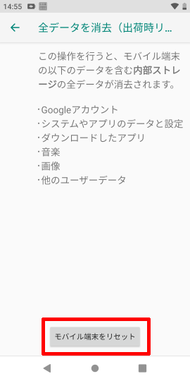 [モバイル端末をリセット]をタップします。