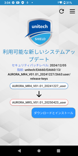 インターネット上のサーバーに、使用しているシステムバージョンより新しいバージョンを見つけると画面に表示します。画面の指示に従って新しいバージョンのダウンロードとインストールを行います。