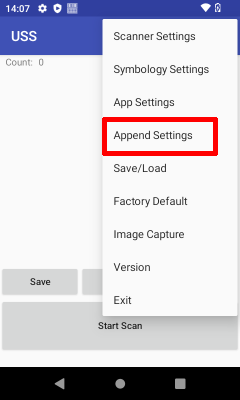 画面右上の[ ]→[Append Settings]をタップして開きます。