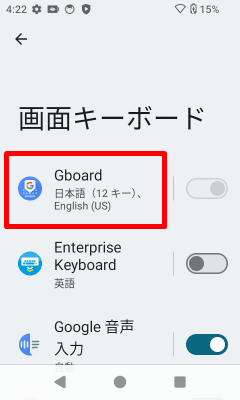 [設定]アプリを起動し、[システム]→[キーボード]→[画面キーボード]→[Gboard]をタップします。