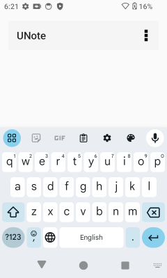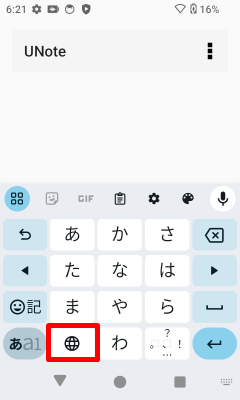 [UNote]アプリを起動し、物理キーボードによる文字入力が可能な状態にします。物理キーボードの[P1]キーを押下して画面キーボードを表示させます。