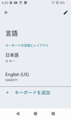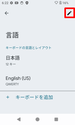 [日本語]にチェックを入れて右上の[]をタップし、日本語キーボードを削除します。