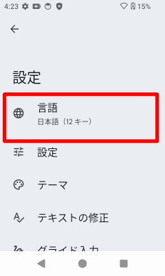 画面キーボードの[]を[キーボードの変更]が表示されるまでロングタップ(長押し)します。