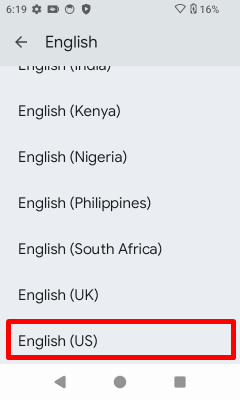[English]→[English (US)]をタップします。