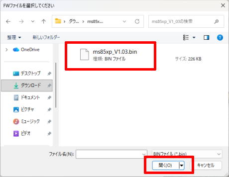 更新する製品にあわせて必要なファームウェアファイルをダウンロードします。ダウンロードしたzipファイルは任意のフォルダに解凍(展開)してください。