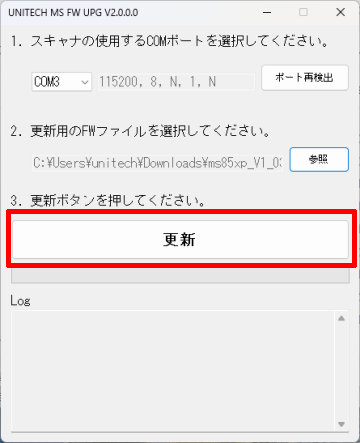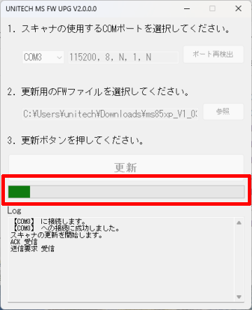 [更新]をクリックして、ファームウェアの更新を開始します。