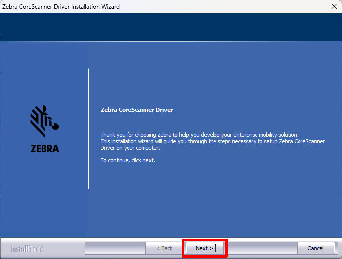 [Zebra_CoreScanner_Driver_(xxbit)_v3.08.0007.exe]を実行します。