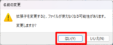 拡張子の変更に関する注意メッセージが表示された場合は[はい]をクリックします。