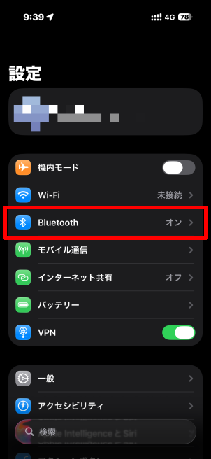 iOSデバイスで[ 設定]アプリを起動し[Bluetooth]を開きます。