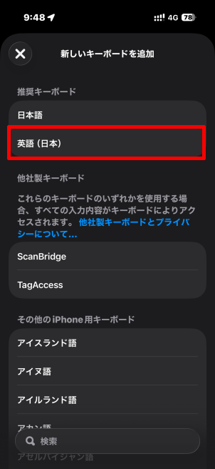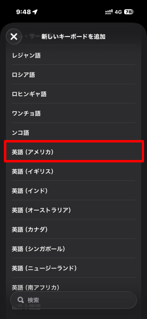 [英語 (日本)]または[英語 (アメリカ)]を探してタップし、デバイスに英語キーボードを追加します。