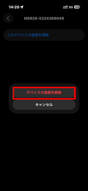 再ペアリング時など、以前の接続情報が残っている場合は、{デバイス名}の右の[]→[このデバイスの登録を解除]→[デバイスの登録を解除]を行います。