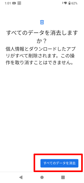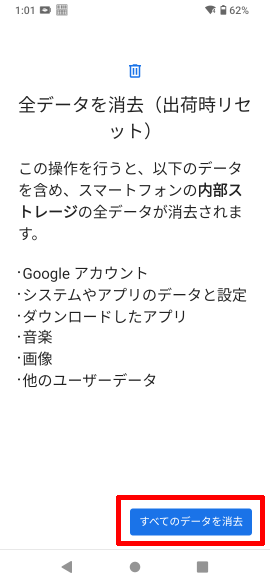 [すべてのデータを消去]をタップします。