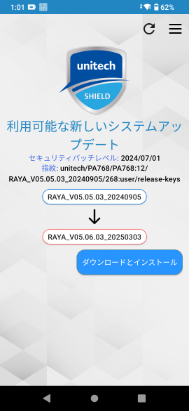 インターネット上のサーバーに、使用しているシステムバージョンより新しいバージョンを見つけると画面に表示します。画面の指示に従って新しいバージョンのダウンロードとインストールを行います。