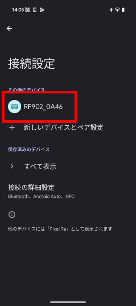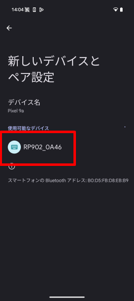 [RP902_xxxx]をタップしてペアリングを開始します。