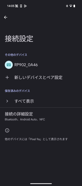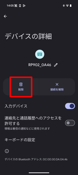 再ペアリング時など、以前の接続情報が残っている場合は[RP902_xxxx]→[ 削除]します。