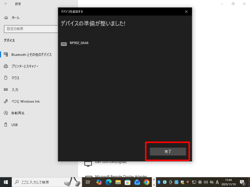ペアリングが完了したら[完了]ボタンをクリックしてウィンドウを閉じます。
