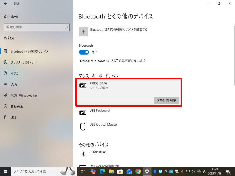 マウス、キーボード、ペンに[RP902_xxxx]が登録されている場合は[削除]します。