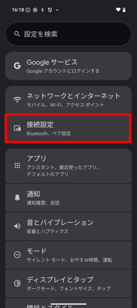 Androidデバイスで[ 設定]アプリを起動し[接続設定]を開きます。