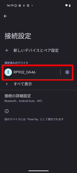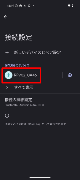 ペアリングが完了しAndroidデバイスにRP902が登録されたらペアリング操作は完了です。