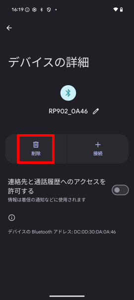 保存済みのデバイスに[RP902_xxxx]が登録されている場合は[]→[ 削除]します。