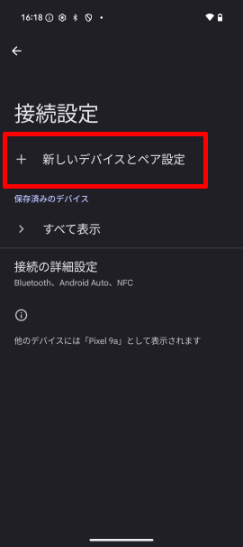 [ 新しいデバイスとペア設定]をタップして開きます。