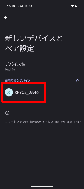 [RP902_xxxx]をタップしてペアリングを開始します。