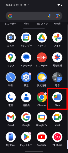 このページでは、Google Pixel 9aに標準インストールされている[Files by Google]を使用します。