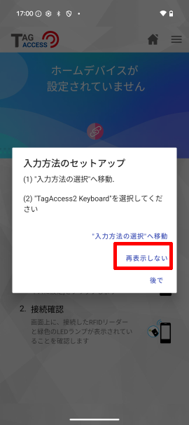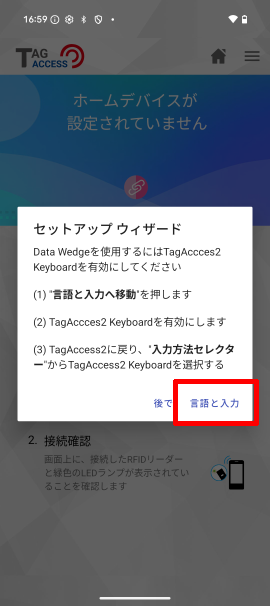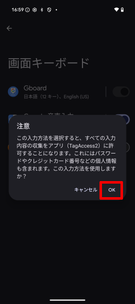 [TagAccess2 Keyboard]のスイッチがオンになったら[]をタップしてTagAccess2の操作に戻ります。