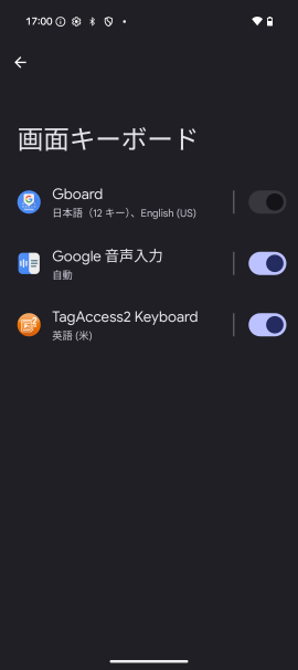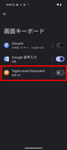 [TagAccess2 Keyboard]のスイッチをタップします。