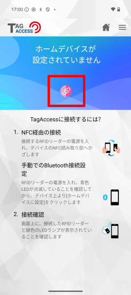 TagAccess2のメイン画面が表示されたら、[ リンクアイコン]をタップします。