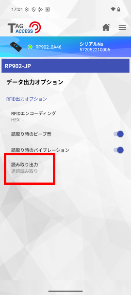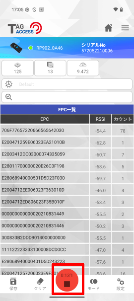 [ 読み取り開始]をタップすれば周囲のRFIDタグを読み取ります。
