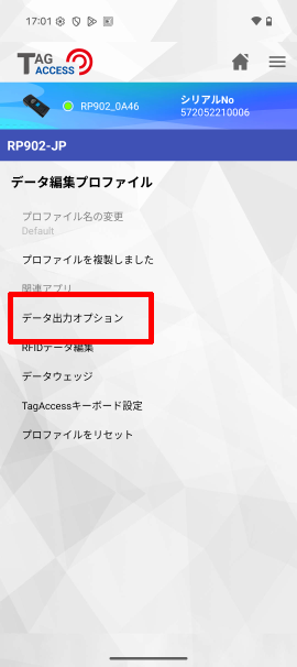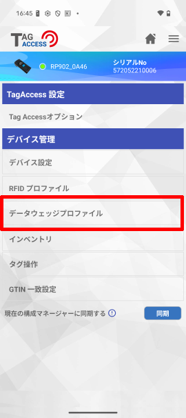 []→[設定]→[データウェッジプロファイル]をタップします。