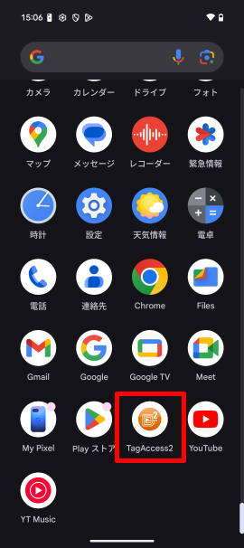 アプリドロワーの[TagAccess2]アイコンをタップして起動します。