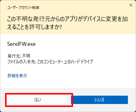 このメッセージが表示されたら[はい]をクリックして続行します。