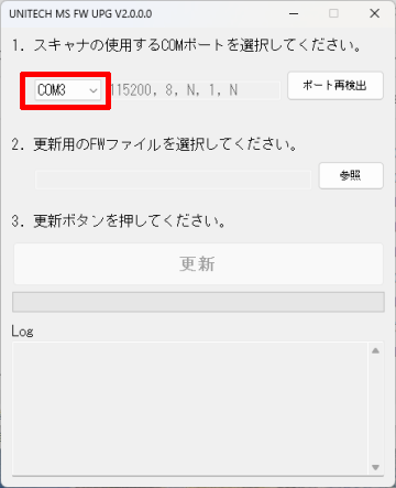 RFIDリーダーに割り当てられているCOM番号を選択します。