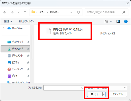更新する製品にあわせて必要なファームウェアファイルをダウンロードします。ダウンロードしたzipファイルは任意のフォルダに解凍(展開)してください。