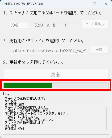 [更新]をクリックして、ファームウェアの更新を開始します。