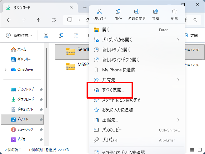 ダウンロードしたzipファイルを右クリックして[すべて展開]するか、zip解凍ソフトウェアを使用して解凍(展開)してください。