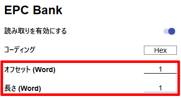 EPC Bankのオプションを次の通りに設定し、その他の読み取りバンクはすべてオフにします。
