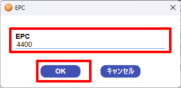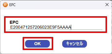 編集されたデータが表示されます。上書きしたいメモリ領域のボタンをクリックして書き込みを開始します。この例ではEPCメモリ領域に書込むため[EPCの上書き]ボタンをクリックします。