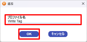 [プロファイル名]に任意の名前(例では「Write Tag」としています)を入力し、[OK]ボタンをクリックします。