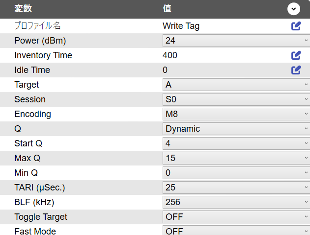 ほとんどのRFIDタグは、標準の96ビット(96ビット=12バイト=6ワード: Hex=24文字、ASCII=12文字)で設定されています。